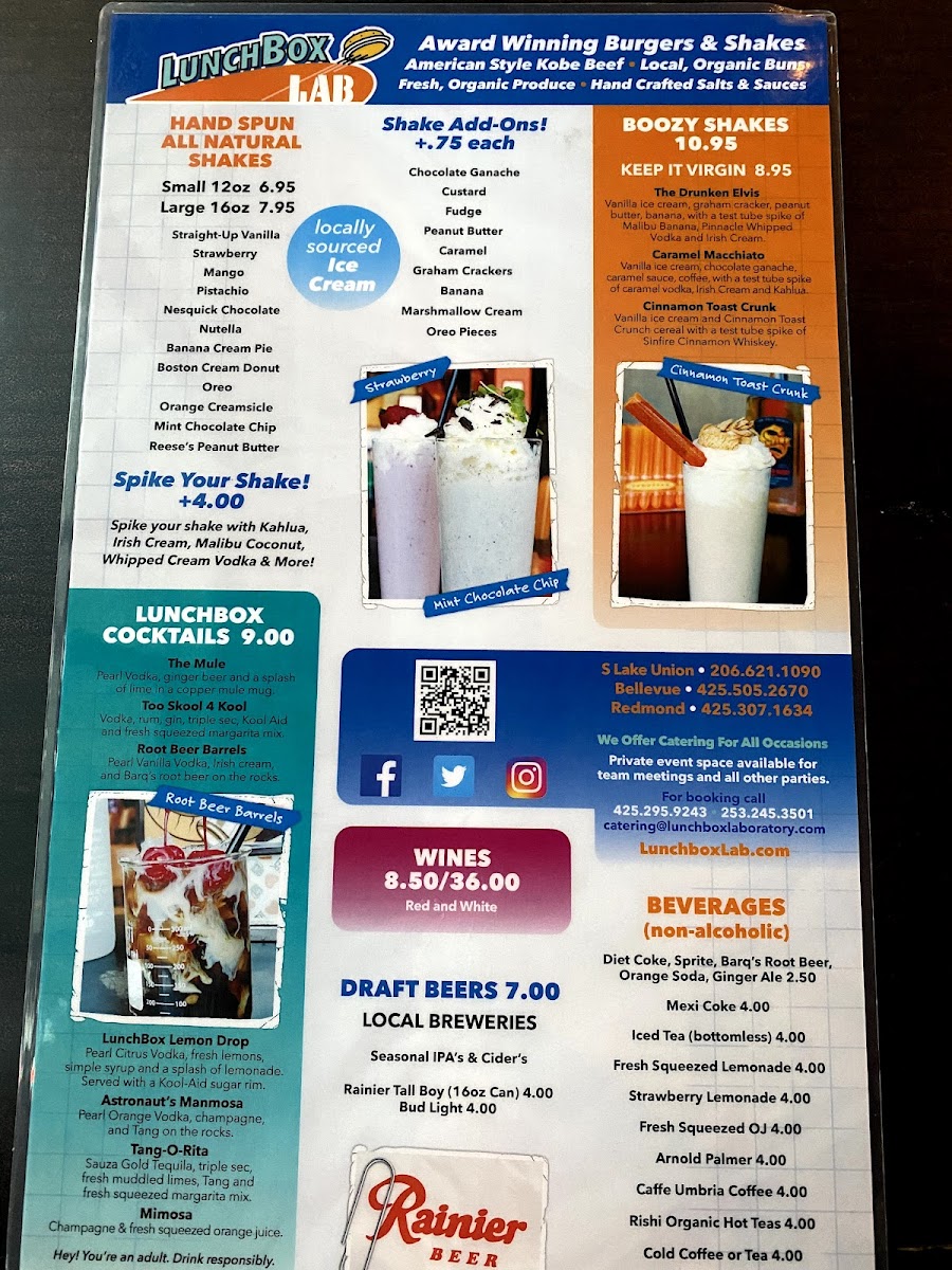 Located in the heart of Seattle, Lunchbox Laboratory offers a delightful dining experience that blends fun and flavor. With a menu showcasing juicy Kobe beef burgers and creative shakes made from Umpqua Dairy, every dish is an adventure. The unique assortment of seasonings, including bacon and rosemary salts, elevates each bite. Customers rave about the generous portions; the fish and chips, noted for its fresh fish and minimal breading, is a local favorite.